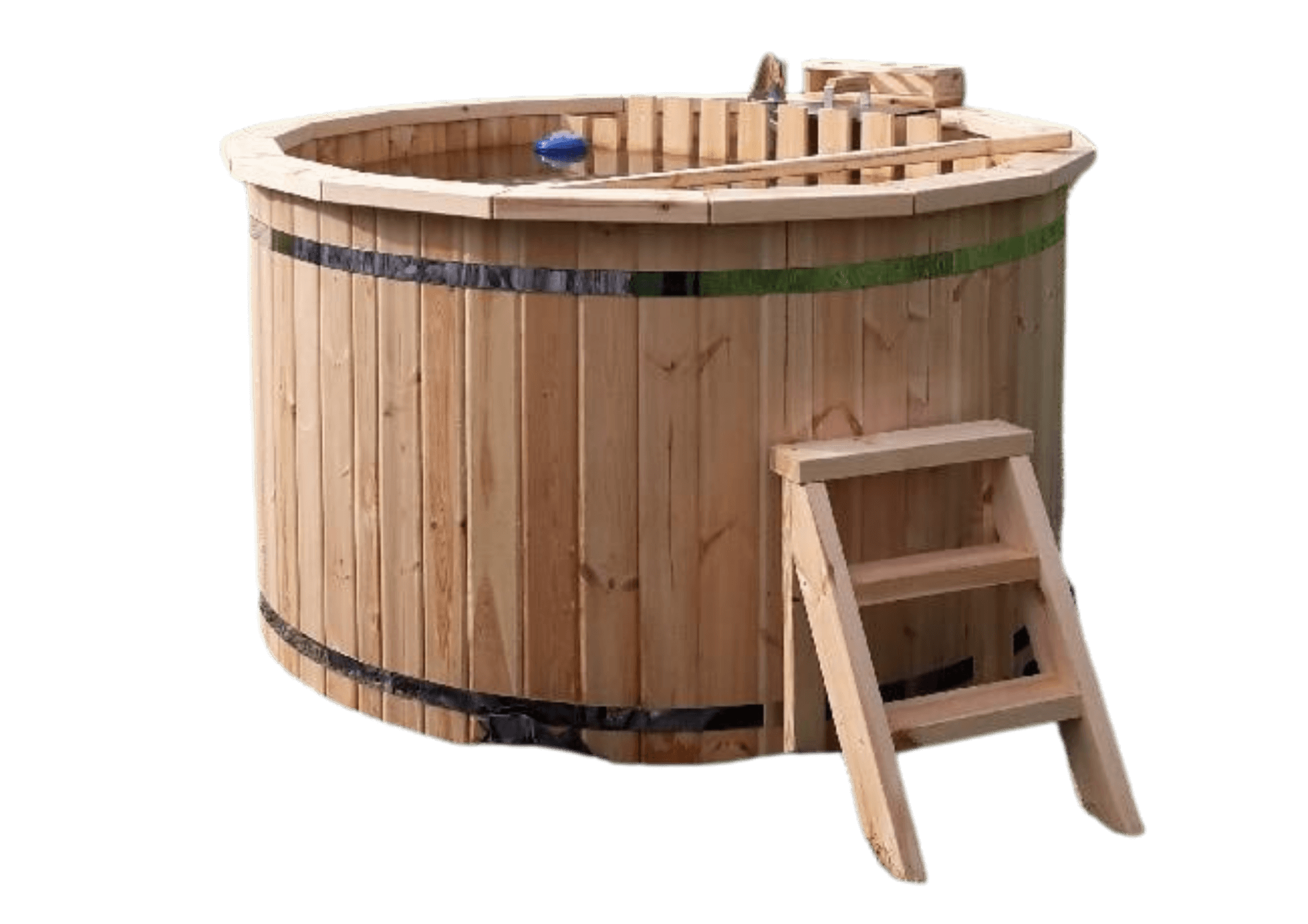 Our wooden hot tubs are made from certified kiln-dried pinewood or thermowood, both known for their durability and insulation.